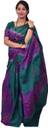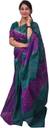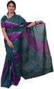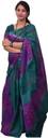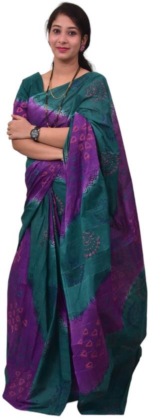 Cotton hand printed cross pattern Peacock Blue and Violet color saree with unstiched blouse