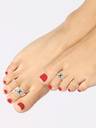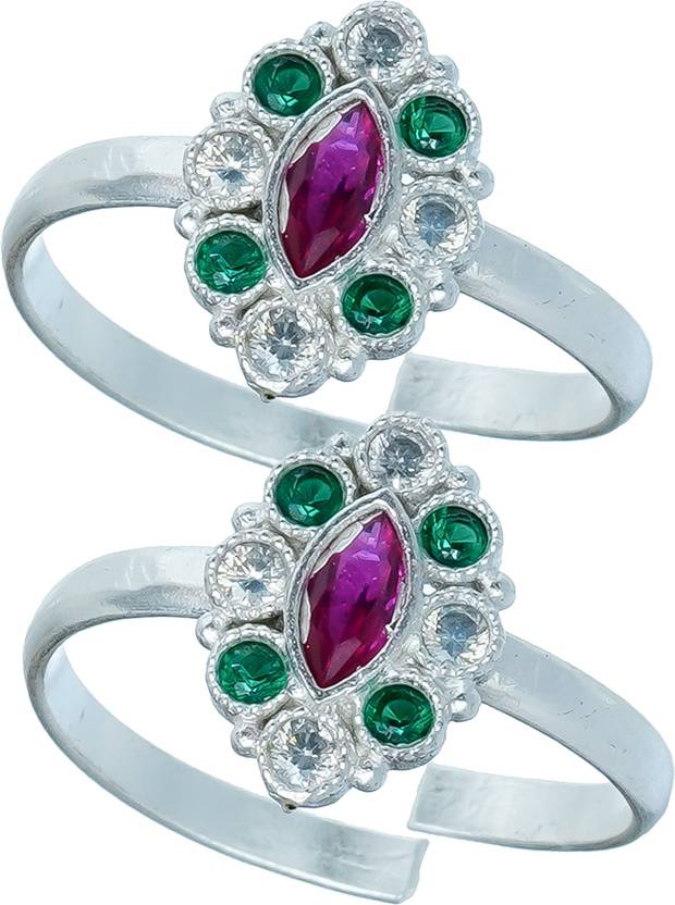 SHUBHAM JEWELLERS Brass Crystal Silver Plated Toe Ring Set