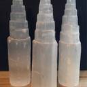 "Selenite is one of a very few minerals with the specific metaphysical capabilities/properties that make it capable of clearing and re-charging other crystals.Not only is Selenite useful for clearing negative or unwanted energies from crystals and stones.Selenite vibrates to a very high frequency, and for this reason, is an extremely powerful light working tool. In addition, it is a natural form of fiber optic, making it especially useful for transmitting white light, and coloured light. Selenite is a crystalline form of Gypsum.The Gem-Ice variety is crystal clear, allowing it to absorb and emit light. Both forms are exceptionally energetic, and versatile, making Selenite an outstanding tool for use in crystal work Selenite does not ever need to be cleared. It is self-clearing, and self-charging. It is also important to note that Selenite should never be placed in or near liquid, as it is water-soluble, and will dissolve over time . * Selenite crystals help to remove all energy blockages in the body. * Selenite is also excellent for clearing and purifying jewelry and environments. * I often place my crystal healing jewelry on a Selenite cleansing crystal over night, and in the morning, * it feels light and clean. The selenite healing properties hold the energy of the light and it feels good."Selenite is said to have a noticeable calming affect and is very common in healing, massage, and spiritual work.Products Size : Length 15 cm x Width 4 cm x Height 15 cm | Color :White | Weight : 362 gm|Place a selenite tower on any area of the body that feels sore or tight, for about 20 minutes, and you will feel the difference.Selenite Skyscrapers from SoloTherapy.Selenite is a stone of mental clarity, enhancing mental flexibility and strengthening decisions.It is also a sweet Angel stone, for angelic guidance. With it you can access past lives.It also promotes good business practices. It removes energy blocks from the physical and etheric bodies. It also is said in crystal healing lore to remove blockages for healing, align the spine, good for the skeleton, and decrease epilepsy and seizures.It also has the ability to clear and enhance the energy of other stones that are placed on or near it. Selenite is associated with the crown chakra.This Stone Are making from Natural Stones so there might be a very slight variation.This gemstone sizes(thickness) may appear slightly different from the Natural Stone.It may represent an entire lot of items so the pattern you receive may vary slightly to the one you see above but the healing properties of the product remains the same.