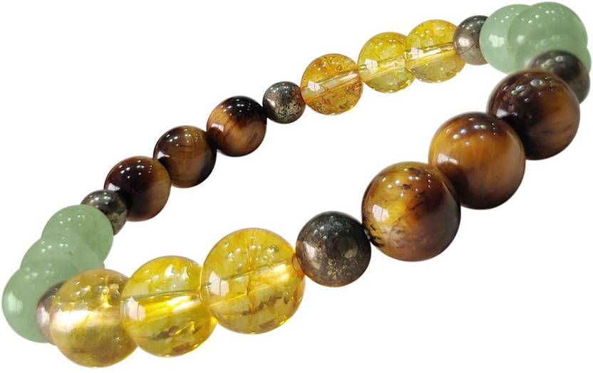 This Wealth Bracelet is made from Citrine,Pyrite,Green Aventurine,Tiger Eye.Citrine brings prosperity and opens the gateway for more abundance to flow into your life.Tiger Eye brings good luck, prosperity to its wearer. It motivates you to go after the financial abundance you want.Tiger Eye is an excellent stone to have with you if you’re looking to increase your wealth, boost your money flow, or create more opportunities for growth.Pyrite removes financial blockages & helps you make wise financial decisions. Green Aventurine helps manifesting wealth and increasing financial luck.Green aventurine one of the most popular known stones to attract success, good luck, and abundance.Pyrite is known as a stone of luck, helping to attract abundance, wealth and prosperity to the user, via its creative energies of manifestation, and its encouragement of following one's dreams.Product Dimensions:-Product Diameter:-6 Cm,Product Weight:-20-25 Gm Approximately.Stretch Bracelet with 24 Beads.Material:Citrine,Pyrite,Green Aventurine,Tiger Eye.Metal Type-Elastic,Color-Multicolor.Wealth Bracelet the All-In-One Wealth & Abundance Bracelet made with Yellow Citrine, Green Aventurine,Tiger Eye & Pyrite were designed to create the ideal crystal combination to bring wealth & prosperity into your life.This healing bracelet is also a great gift option for friends and family on occasions like birthdays, wedding anniversaries, and festivals like Raksha Bandhan, Diwali, etc. Purchase this beautiful healing bracelet today.PERFECT GIFT: It is the best choice for a Birthday,Anniversary,Holidays,Stocking stuffers, graduation, Christmas, Valentine's Day, and any other occasion.