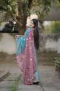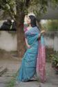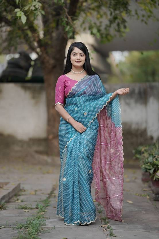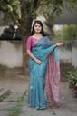 Digital Print, Hand Painted Bollywood Organza Saree (Blue)