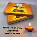 Shubhkarma Nitya Pujan Clay Ghee Diya(Set of 30),Mitti Diya with Cow Ghee,Burning 30min Cotton Wick (Pack of 30)