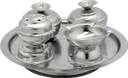 Shubhkart puja Karanda set stainless steel plated consists of an intricately designed, as well as, an assortment of their items necessary for performing various religious rites during auspicious occasions beautifully polished and crafted this puja steel beautifully. Karanda set includes stainless steel Haldi-Kumkum kori, Agarbatti holder, and small size Diya with attached steel plate. Perfect for worship place as well as special occasions/festivities present on the occasion of Diwali, Raksha Bandhan & another festive season.
