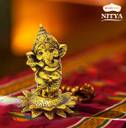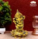 Shubhkart Nitya Bal Ganesha Playing Flute - 295 g Decorative Showpiece - 15.4 cm (Metal, Yellow)