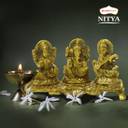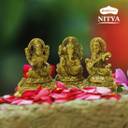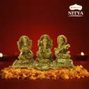 Shubhkart Nitya Ganesh Saraswati Idol with Diya Lamp Statue - 188 g Decorative Showpiece - 10.5 cm (Metal, Yellow)
