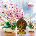 Shubhkart Nitya Laxmi On Singhasan - 274 g Decorative Showpiece - 15.8 cm (Metal, Yellow)