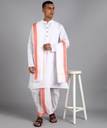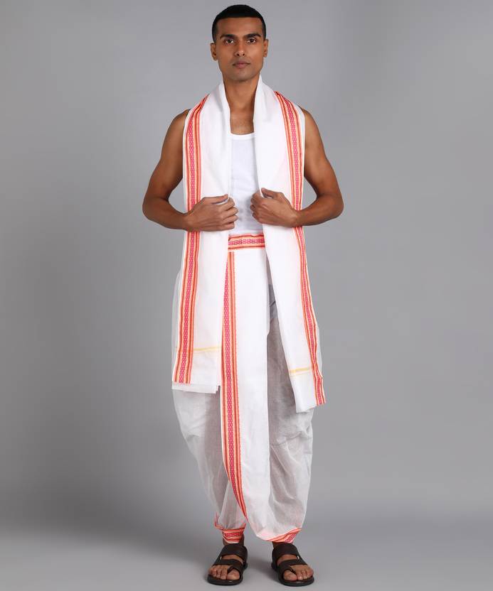 SSH Shree Shyam Handloom dhotis are made of 100% cotton and highly traditional to wear. The fine quality cotton combined with rich colors along with bright orange border makes this extremely perfect outfit to the wearer. Our Dhotis will lend you a stylish ethnic look, with ensuring comfort.