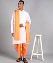 SSH Shree Shyam Handloom dhotis are made of 100% cotton and highly traditional to wear. The fine quality cotton combined with rich colors along with bright orange border makes this extremely perfect outfit to the wearer. Our Dhotis will lend you a stylish ethnic look, with ensuring comfort.
