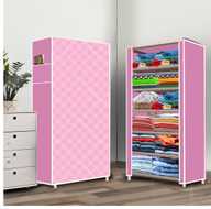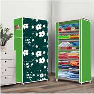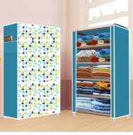 ANNOY Multipurpose 6 Shelves Shoe Rack with Zip Door Cover & Side Pockets PVC Collapsible Wardrobe (Finish Color - BLUE, DIY(Do-It-Yourself))