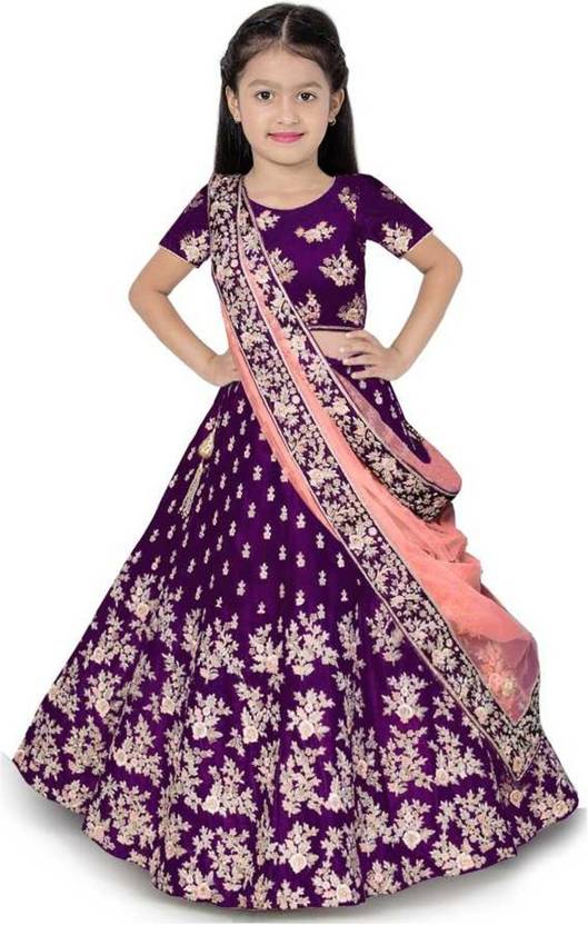 Girls Lehenga Choli Ethnic Wear Embroidered Lehenga Choli (Purple, Pack of 1)