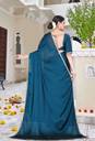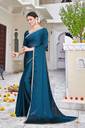 Ready to Wear Solid/Plain Bollywood Satin Saree (Blue)