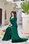 Women’s Designer Embellished Mirror Lace Border Satin Saree With Blouse