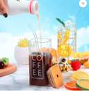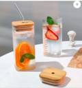 1 WOODEN LID, 1 GLASS MUG, 1 STRAW