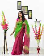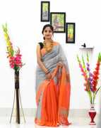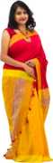 Striped Handloom Cotton Silk Saree (Red, Yellow)