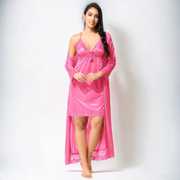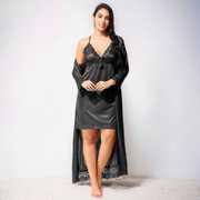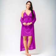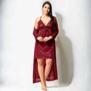 The set contains a nighty, a robe and a combo of top and bottom that will provide you with variety. The set is made of satin fabric, which not only provides a soft feel and helps you to stay comfortable but also gives it a silky finish.