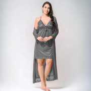 Nighty with Robe set: Includes a comfortable nightgown paired with a matching robe, Nighty crafted from soft, breathable fabrics for a cozy sleep experience, Robe adds warmth and sophistication to your loungewear ensemble, Available in various sizes, colors, and designs to suit individual preferences., Provides versatility for both bedtime comfort and relaxed lounging at home., Thoughtfully designed for a blend of comfort, style, and ease of wear.