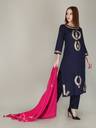 SIARA offers you this fashionable Kurta & Pant with Dupatta Set comes with Blue Color Solid Straight Design, Exhibits 3/4th Sleeves & Round Neck ; Embellished With Gota Work for a versatile look & this kurta will keep you at easy all day long. Tailored from Kurta-Rayon : Pant-Rayon Fabric : Dupatta : Rayon