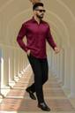 This men's full-sleeve shirt is crafted from a smooth, lustrous fabric, giving it a sleek and sophisticated appearance. It features a classic collar and a full button-down front, making it suitable for various occasions. The rich teal color adds a touch of elegance. This shirt can be paired with formal trousers, chinos, or dark wash jeans for a stylish look.