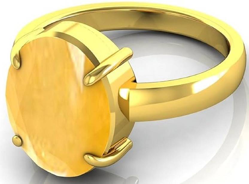 SIDHGEMS Brass Sapphire Gold Plated Ring