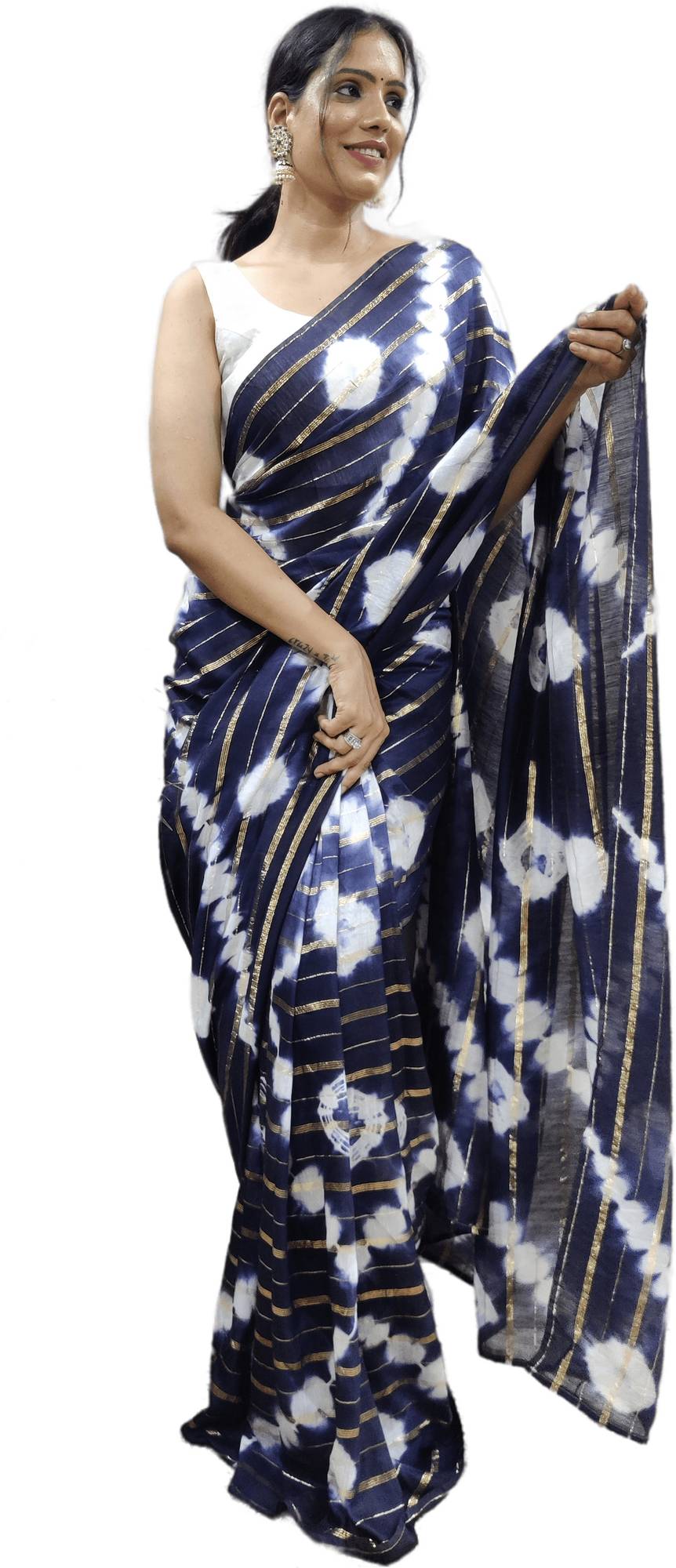 Sidhidata Printed Leheria Nylon Saree (Blue)