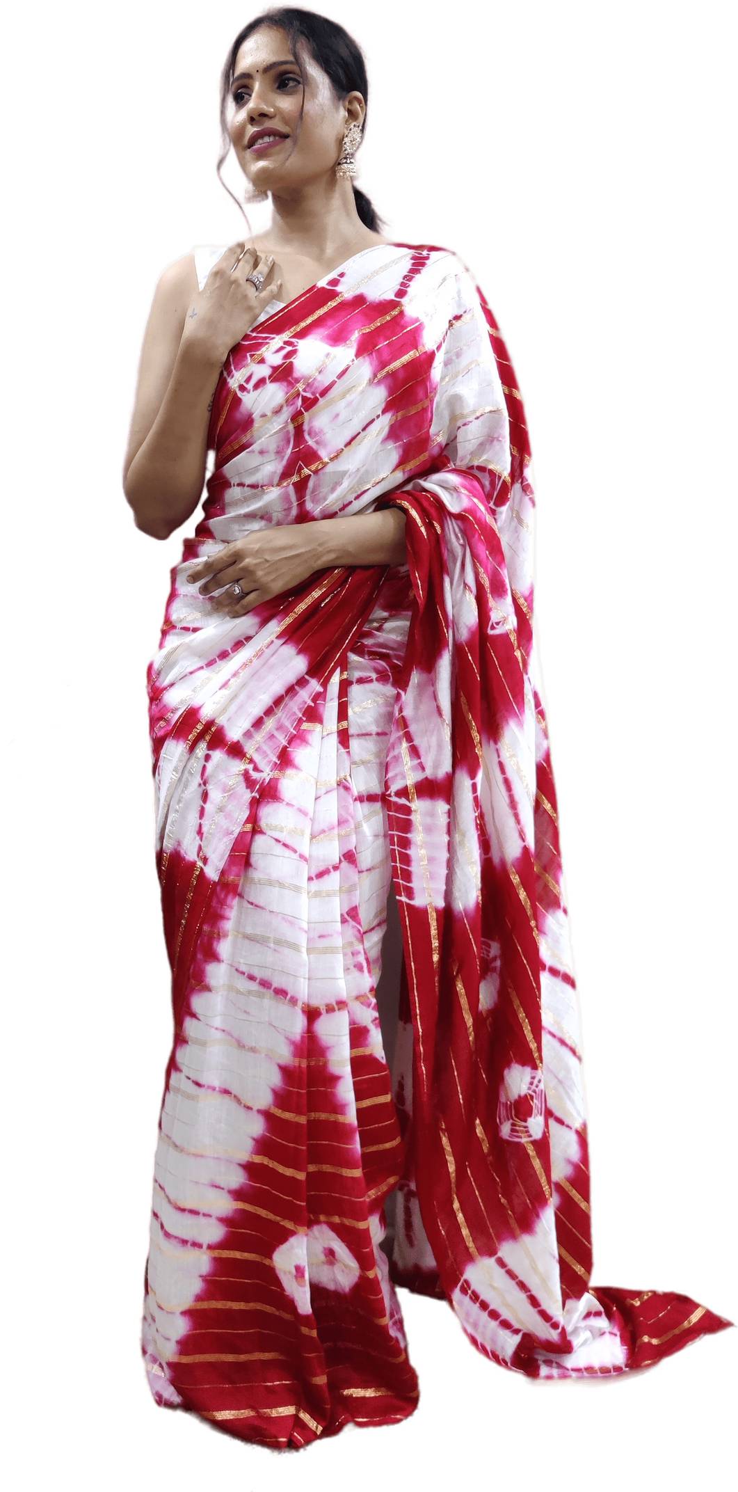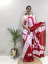 This Saree Made With High Quality Nylone Fabric With Zari Lining Hand Printed Tie & Die Saree Comes With Unstitched Blouse Piece