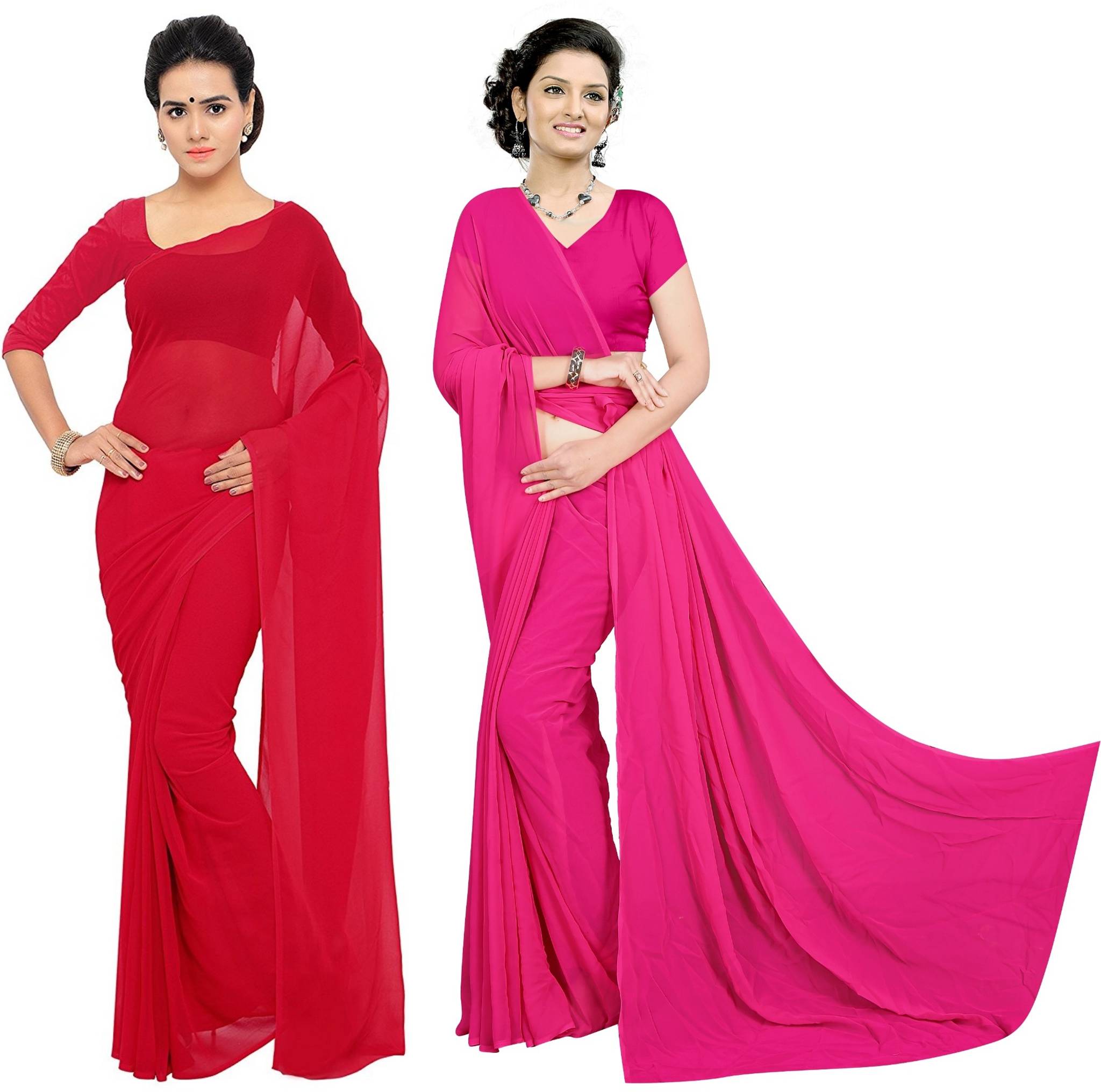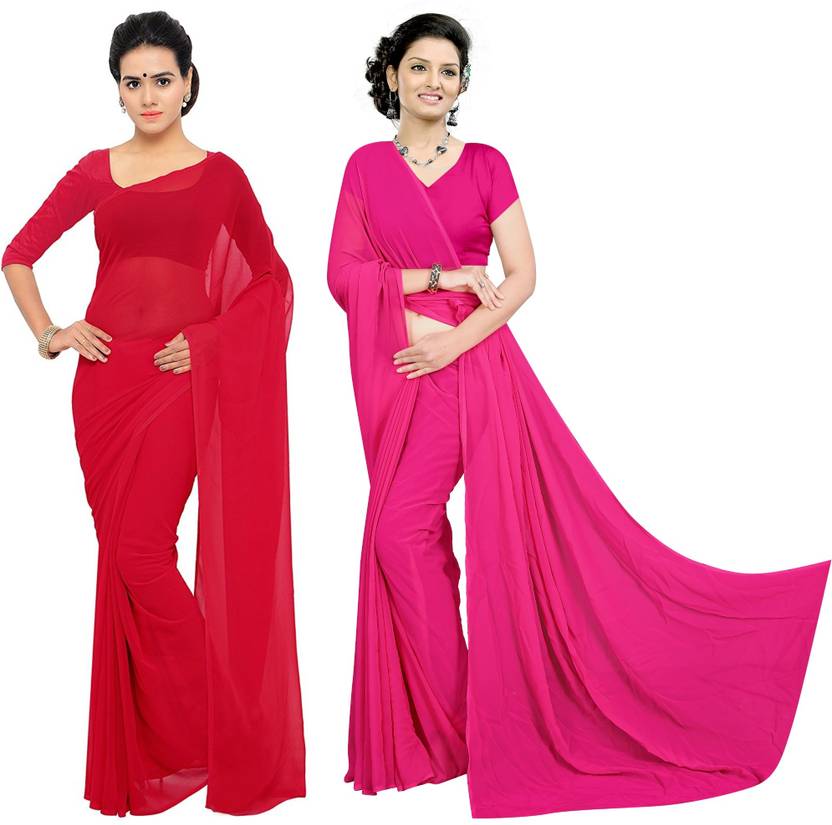 pack of 2 Beautiful Plain solid 60 Gram Georgette saree with blouse piece