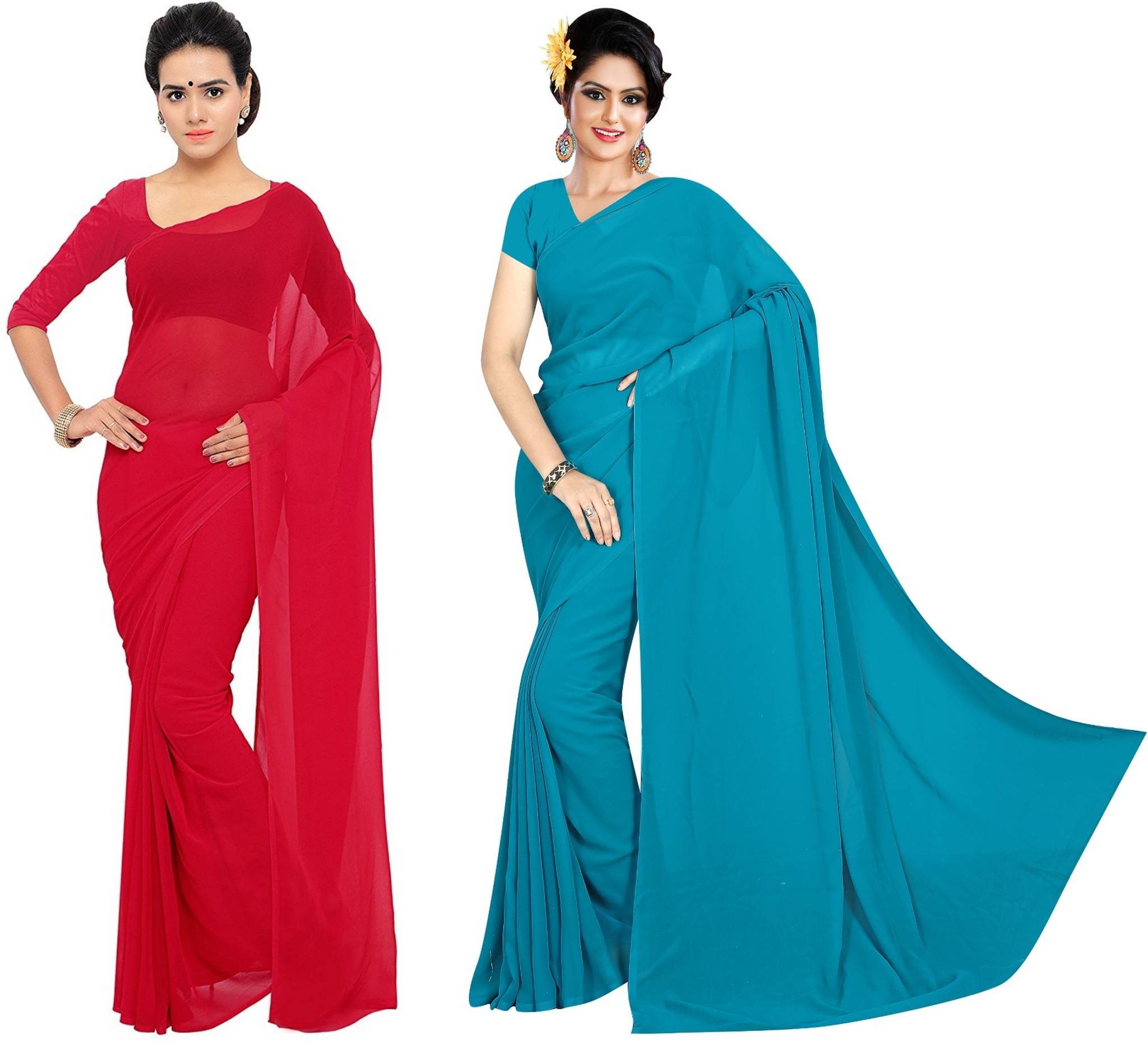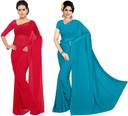 pack of 2 Beautiful Plain solid 60 Gram Georgette saree with blouse piece