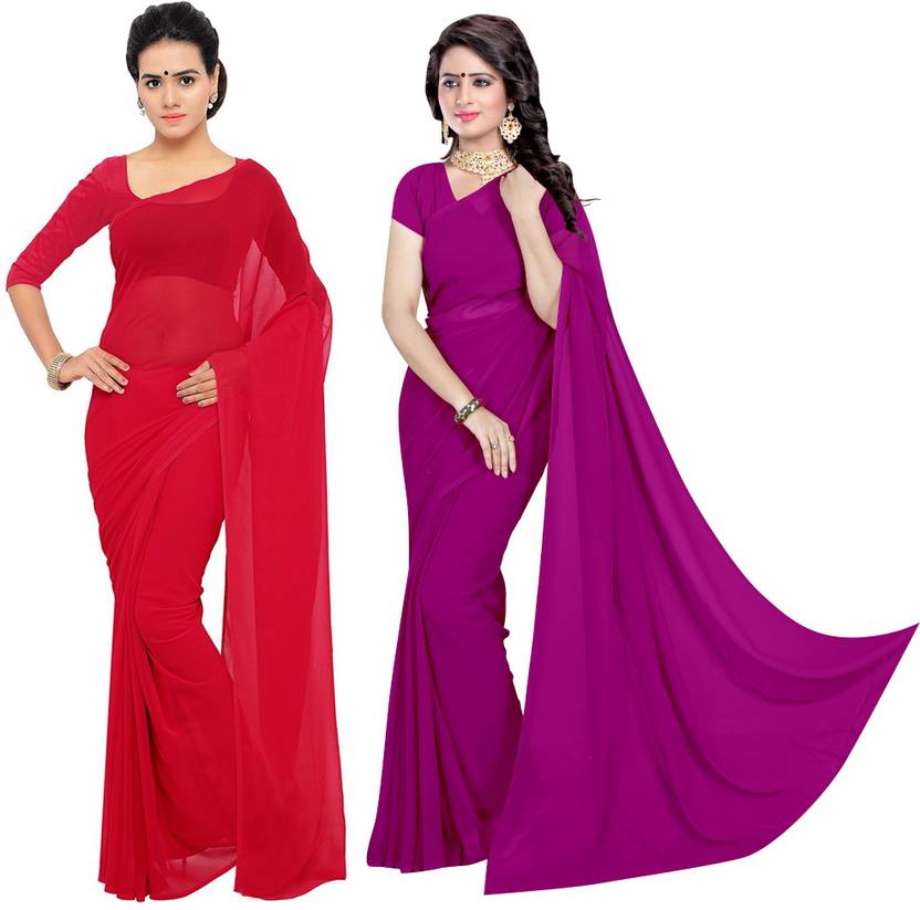 pack of 2 Beautiful Plain solid 60 Gram Georgette saree with blouse piece