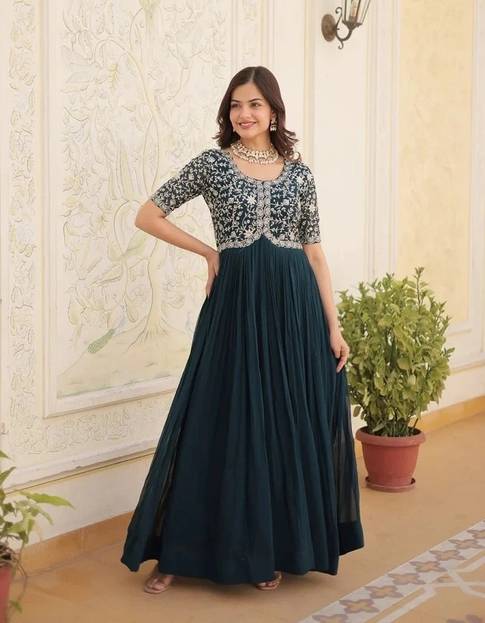 Neha Blue Faux Georgette With Sequence Work Anarkali Suit-38-XL