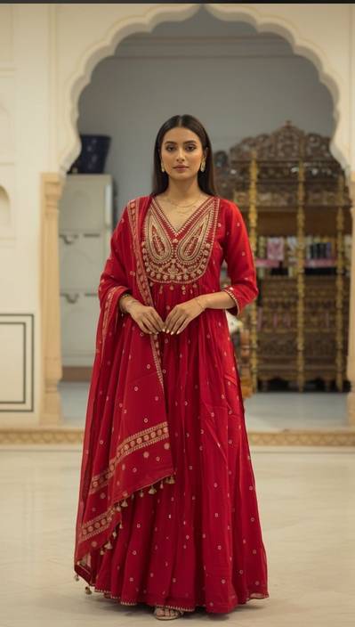 Neha Red Faux Georgette With Sequence Work Anarkali Suit-38-S