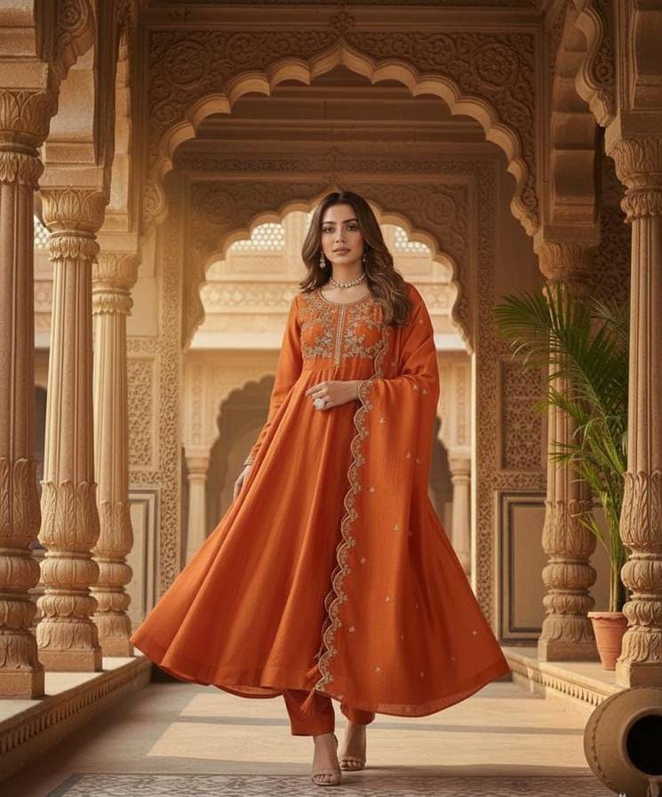 Neha Orange Faux Georgette With Sequence Work Anarkali-38-XL