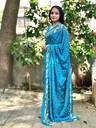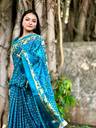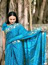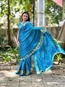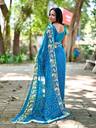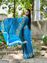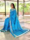 Animal Print Bandhani Crepe, Silk Blend Saree (Blue)