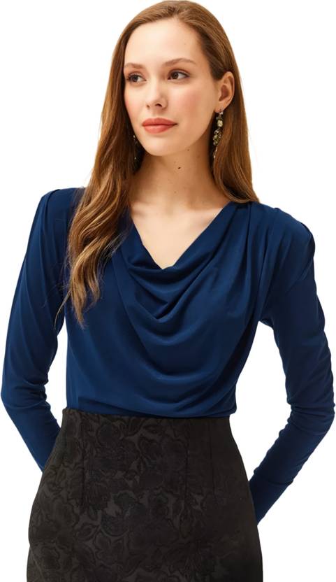 SIGHTBOMB Formal Solid Women Dark Blue Top