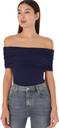 SIGHTBOMB Formal Off Shoulder Sleeve Solid Women Dark Blue Top