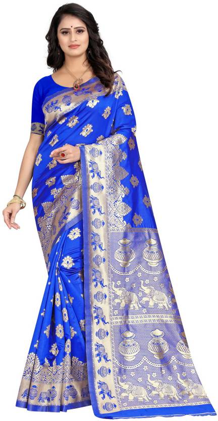 signagraph Woven Banarasi Silk Blend, Art Silk Saree (Blue)