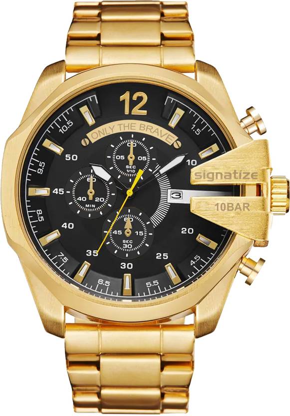 SIGNATIZE Wrist Watches, Large Dial Gold Steel Strap Quartz Watch,Analog Dial Men's Watch Analog Watch - For Men SZ-9086