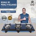 Sigri-wala 3B Blue Sleek Toughened Glass Gas stove(Manual,Blue) Glass Manual Gas Stove (3 Burners)