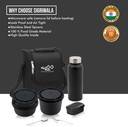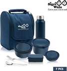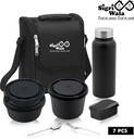 Sigri-wala Black Lunch Box Microwave Safe Set of 7 with Bottle|Bag & Cutlery 7 Containers Stainless Steel Office Lunch Box (1250 ml)