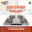 Sigri-wala Primecook Manual Slim SS Stainless Steel Manual Gas Stove (4 Burners)