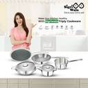 1Dosa Tawa, 1Fry Pan, 1Kadhai with SS Lid, 1Casserole with SS Lid, 1Sauce Pan