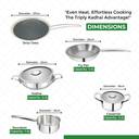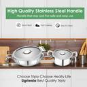 Upgrade your kitchen with the Sigri Wala Triply Stainless Steel Cookware Set, designed for superior performance, durability, and style. This premium set includes a stainless steel kadhai with lid, fry pan, casserole with lid, sauce pan, and roti tawa – each crafted from high-quality triply stainless steel for fast and even heat distribution. The triple-layered construction ensures your food cooks evenly while retaining its nutrients and natural flavors. Compatible with both induction and gas stoves, this set is perfect for everyday cooking as well as special recipes. The ergonomic handles ensure a firm grip, while the mirror-finish exterior adds a touch of elegance to your kitchen.
