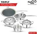 Sigri-wala Triply 7Pcs Combo Kadai22cm, FryPan22cm,Saucepan16cm,Casserole18cm,Tawa27cm,LID Induction Bottom Cookware Set (Triply, 5 - Piece)