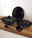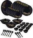 Sigri-wala Pack of 40 Melamin BLACK FLOWER Dinner Set (Black, Gold, Brown)