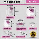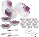 Sigri-wala Pack of 40 Melamin Dinner Set (White, Purple)