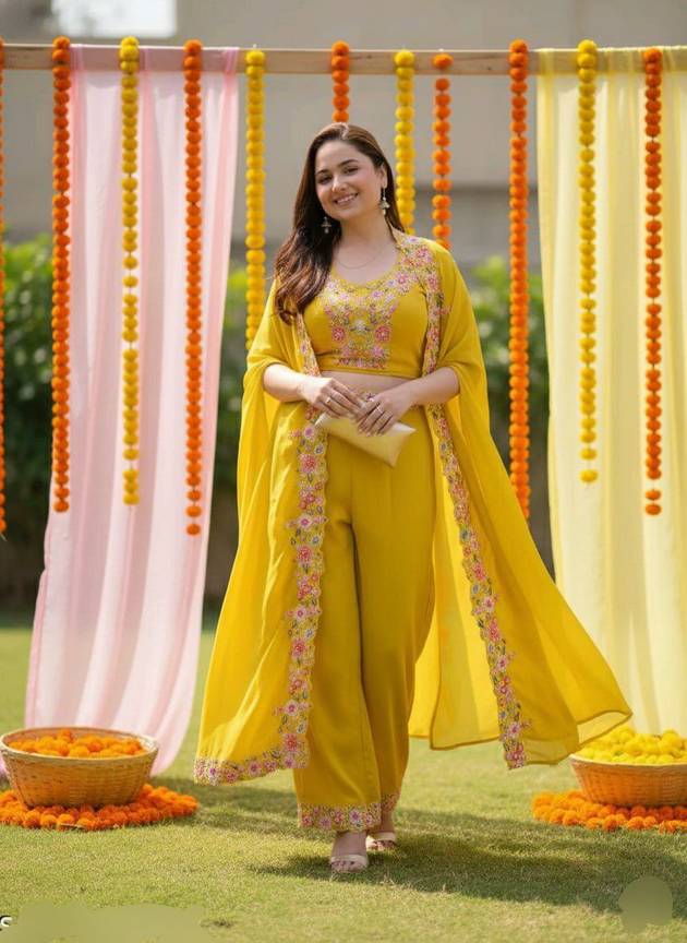 Embroidered Georgette Stitched Anarkali Gown (Yellow)