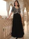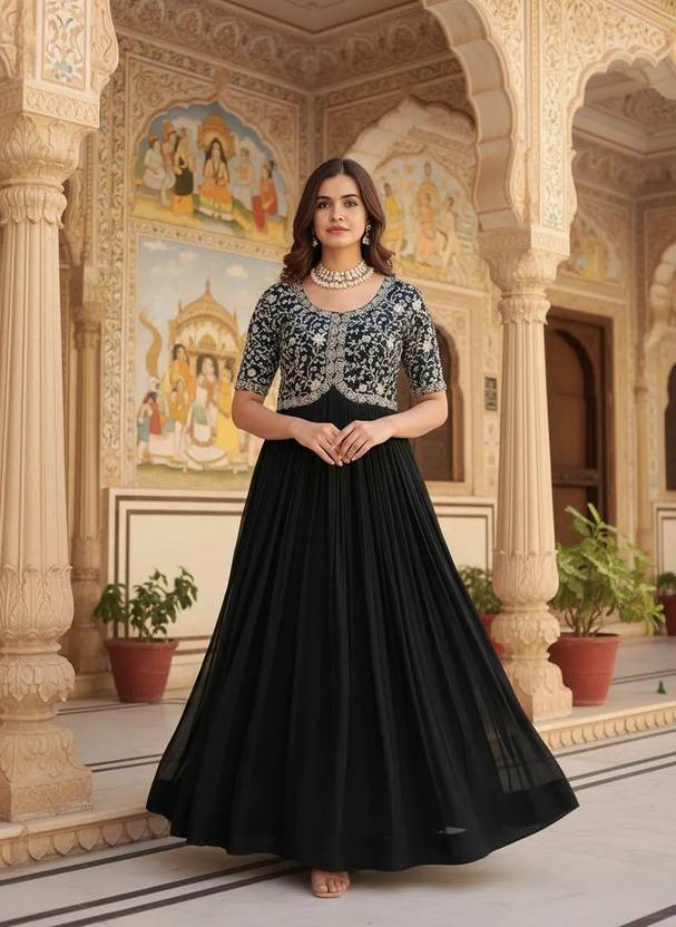 Embroidered Georgette Stitched Anarkali Gown (Black)