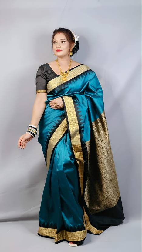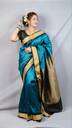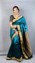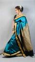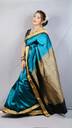 Enjoy the classic style of the Sambhalpuri Patta Silk Saree in a gorgeous pearl cream hue that is exquisitely framed with a deep purple border. With its beautiful temple Bomkai border, this saree will give your wardrobe a dash of traditional Odisha creativity. Its regal charm is enhanced by the all-over colour buti woven design, which makes it ideal for traditional events like weddings and party style. Because the silk is lightweight, it drapes beautifully and lets you move with ease and elegance. The matching blouse completes the set that is this saree. This Sambhalpuri saree's superb craftsmanship and improved appeal will make you stand out whether you're attending a festive celebration or a cultural event. Embrace your Odisha roots in this beautiful yet comfortable saree.