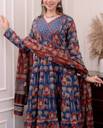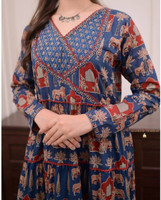 Sporting a gathered waist, the kurta in this set accentuates your shape to give you a stylish silhouette. Its Anarkali style provides a flattering, flowing fit that adds grace and movement. Its full sleeves offer additional coverage, making this an excellent choice for different weather conditions. Also, its V-neck enhances the overall design with a simple and clean finish, providing a balanced look. The matching pants complete this outfit, adding structure while maintaining this set's relaxed and easygoing vibe.