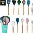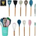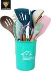 SILICONE KITCHEN-UTENSILS 11 Wooden Handle Silicone Kitchenware Multi-color Kitchen Tool Set Kitchen Tool Set (Multicolor, Cooking Spoon, Ladle, Tong, Spatula)