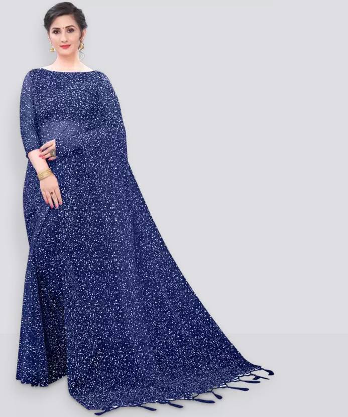Silkbazar Printed, Self Design, Solid/Plain Bollywood Net Saree (Dark Blue)